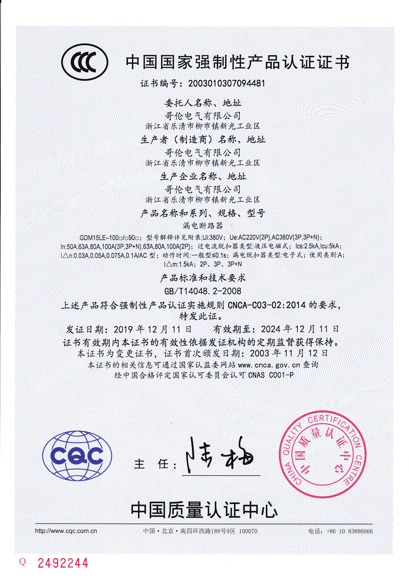 符合IEC60947-2、GB/T 14048.2標準。