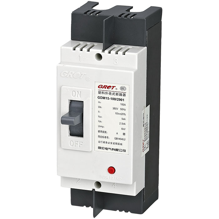 GDM15系列塑料外殼式斷路器適用于交流50Hz額定工作電壓380V及以下,其額定電流從6A至100A。01型一般作為配電用,在配電網(wǎng)絡(luò )中用來(lái)分配電能和保護線(xiàn)路及電源設備免受過(guò)載、短路的損壞;02型的斷路器亦可作為保護電動(dòng)機用。其中透明塑料外殼式斷路器具有可見(jiàn)斷點(diǎn)的可視開(kāi)關(guān)狀態(tài)亦可作為隔離開(kāi)關(guān)用。