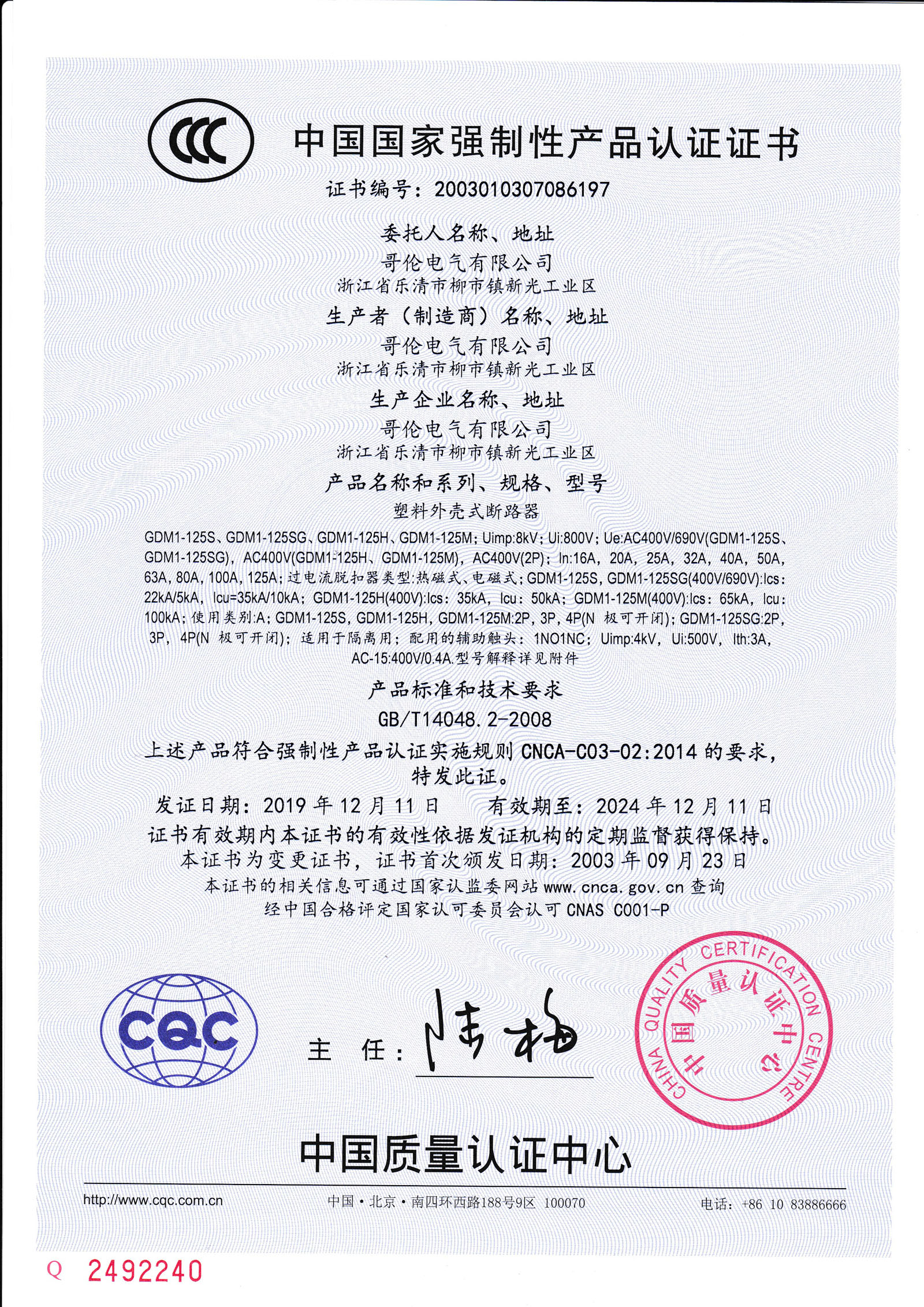 產(chǎn)品符合IEC60947-2、GB/T 14048.2標準。